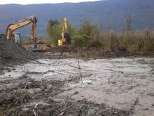 Ici le CEN Savoie a remis en surface, par dessus les rhizomes enfouis, les sédiments profonds excavés ; en les exportant hors-site, il pourra à l'avenir, en plus d'éliminer la renouée, créer des milieux aquatqiue et ainsi redémarrer un cycle d'évolution : mare, roselière aquatique, roselière terrestre ... évolution d'autant plus rapide que les déchets flottants viendront s'accumuler, sur une ligne de berge figée par la régulation des niveaux, au lieu de s'épandre sur des dizaines d'hectares comme cela se passait naturellement.